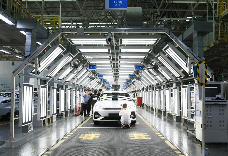 Работниците сглобяват автомобили в завода на Geely ‘S Guiyang в провинция Гуйджоу. [Photo by Wu Min/For chinadaily.com.cn]