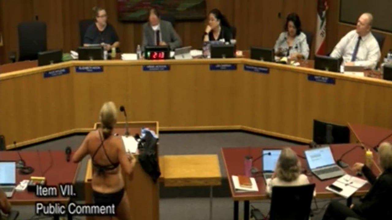 Редовното заседание на Съвместния съвет на образованието на Университетския окръг Дейвис бе изхвърлено от релсите на 18 септември, когато Бет Борн свали дрехите си по време на частта за публични коментари на срещата.
