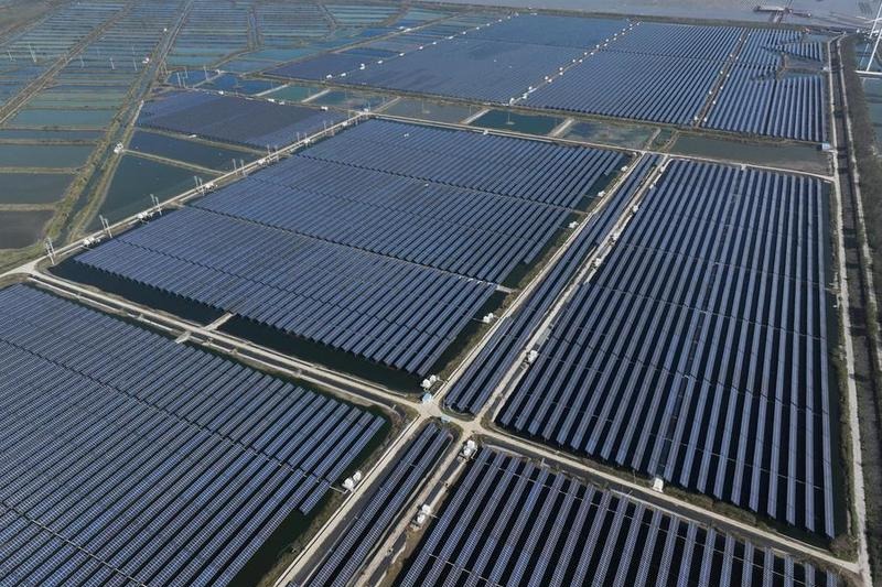 Снимка с дрон, направена на 3 ноември 2024 г., показва проект за фотоволтаична енергия в окръг Рудонг на град Нантонг, провинция Дзянсу в Източен Китай. [Photo/Xinhua]
