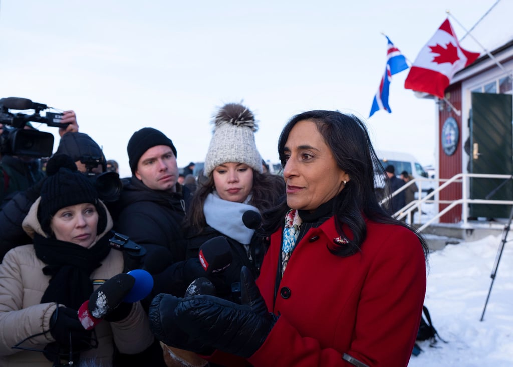 Министърът на външните работи на Канада Анита Ананд (вдясно) говори пред медиите в новото канадско консулство в Нуук, Гренландия, в петък. Снимка: The Canadian Press чрез APМинистърът на външните работи на Канада Анита Ананд (вдясно) говори пред медиите в новото канадско консулство в Нуук, Гренландия, в петък. Снимка: The Canadian Press чрез AP