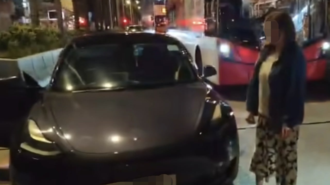 Видео, циркулиращо онлайн, показва как жената седи на Nathan Road, преди да стане и да хвърли предмет, наподобяващ смартфон, към автомобил Tesla. Шофьорите наблизо викат „Спри!“ и „Обадете се на полицията!“ няколко пъти, докато се приближава до Tesla.