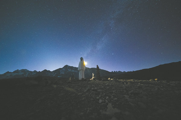 Gao Qiuhong под пълно със звезди небе на Yak Meadow в Lijiang. [Photo provided to China Daily]