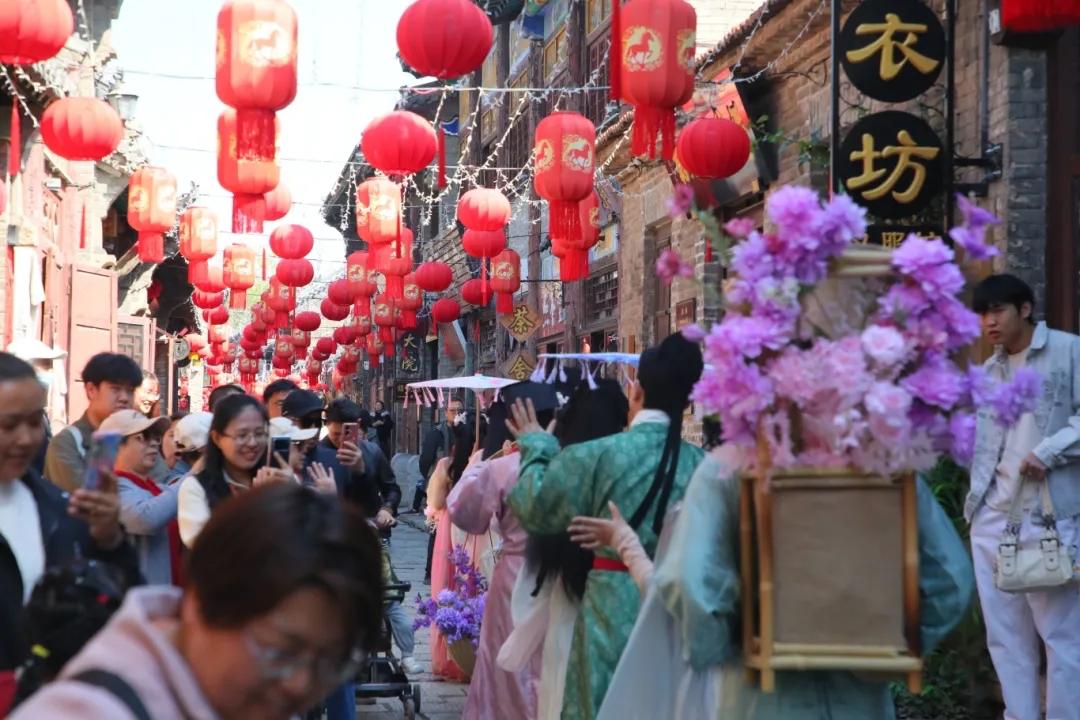 Древният град в квартал Zhoucun на Zibo, провинция Shandong, е оживен от туристи. [Photo by Zhang Jing/for chinadaily.com.cn]